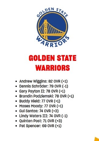 2K勇士球员数值更新:桑托斯&波斯特各+3 维金斯+1至82