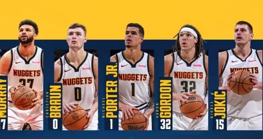 掘金首发:约基奇、穆雷、戈登、小迈克尔-波特、布劳恩。