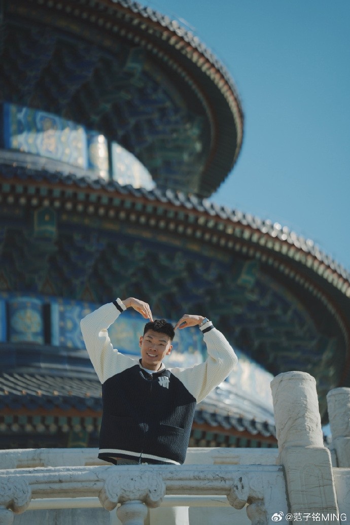 2月25日讯 今日,北京男篮球员范子铭更新社媒,晒出了游天坛的照片。