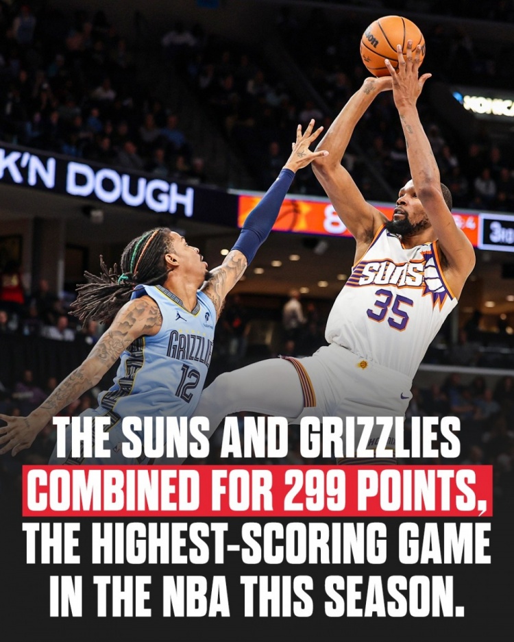 昨日太阳148-151惜败灰熊 两队砍299分创本赛季单场得分纪录