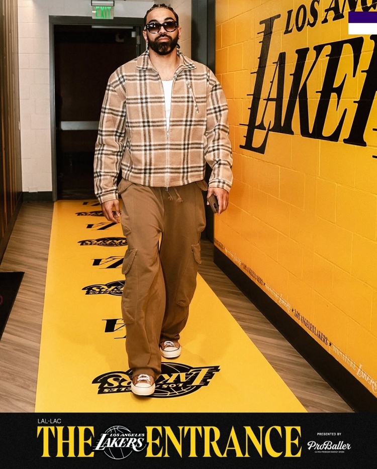 湖人众将入场穿搭:老詹短裤+拖鞋 文总墨镜+格子衫 克内克特干练