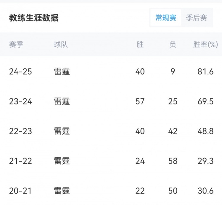 相关新闻>>>头两季仅30%胜率!雷霆主帅戴格诺特执教胜率来到50%