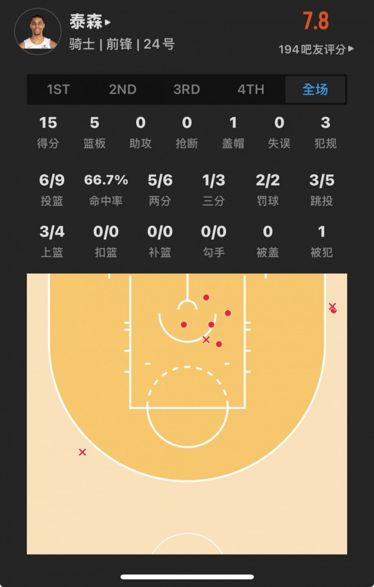 骑士20号秀 杰伦-泰森 登场16.8分钟