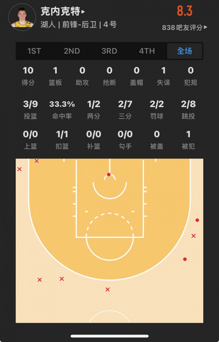 湖人17号秀 道尔顿-克内克特 登场22.2分钟