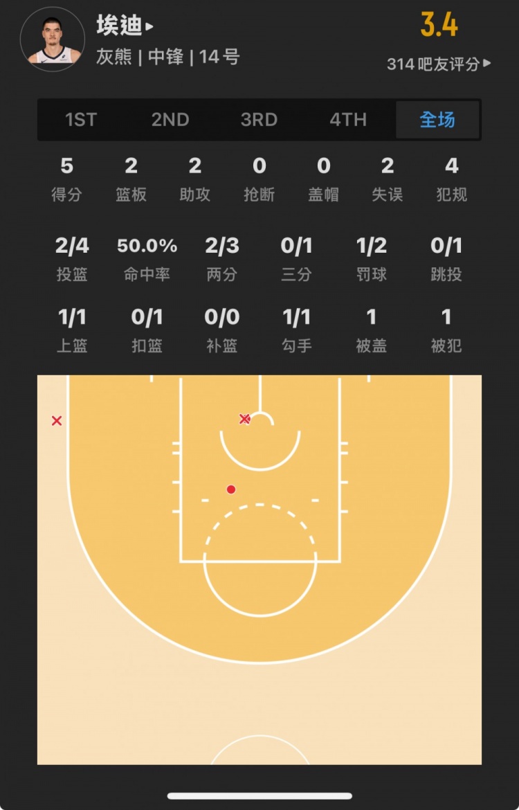 灰熊9号秀 扎克-埃迪 登场17.3分钟