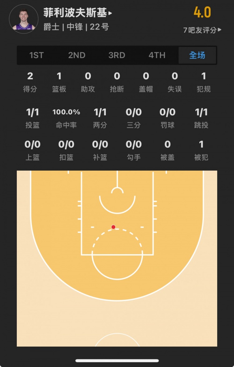 爵士32号秀 凯尔-菲利波夫斯基 登场14.4分钟