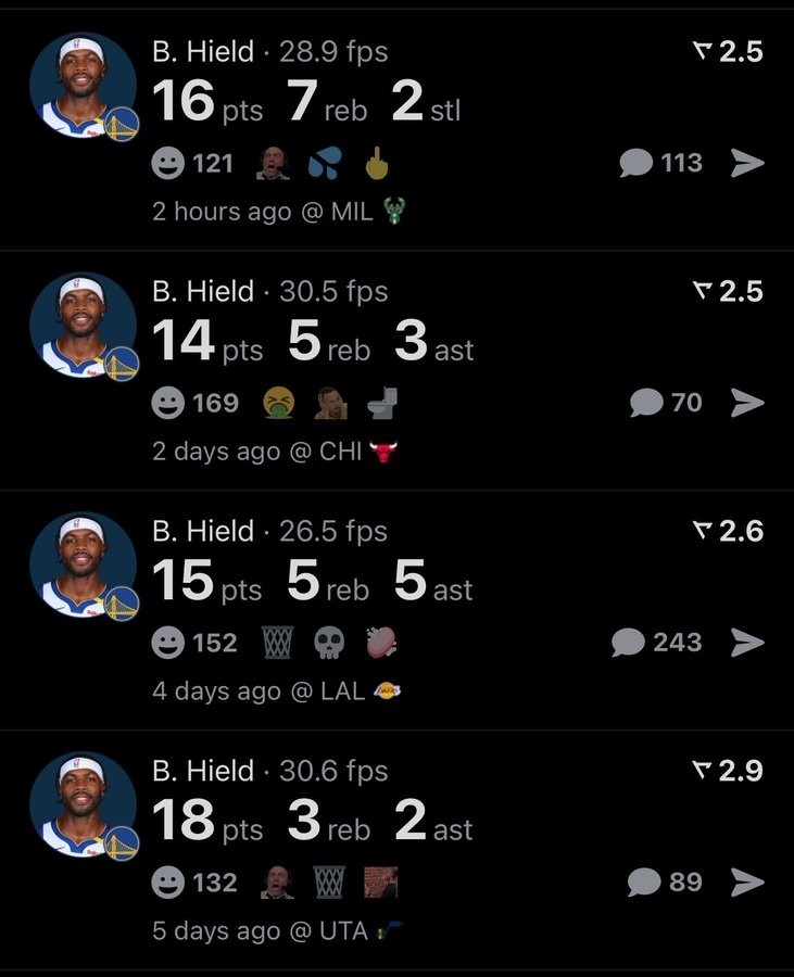 勇士球员希尔德首发出战30分钟,15投7中,三分8中2,得到了16分7篮板1助攻2抢断。