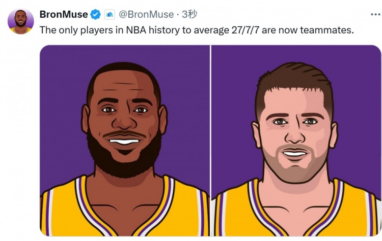 历史唯二!美媒:詹姆斯&东契奇生涯场均至少27分7板7助 如今联手 詹姆斯生涯场均27分7.5篮板7.4助攻东契奇生涯场均30.9分9.4篮板8助攻 2025/02/02