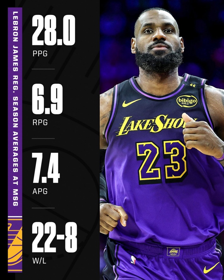 后天如何?詹姆斯生涯做客麦迪逊花园22胜8负 场均28分6.9板7.4助 2月2日,湖人将做客麦迪逊广场花园挑战尼克斯。 2025/01/31