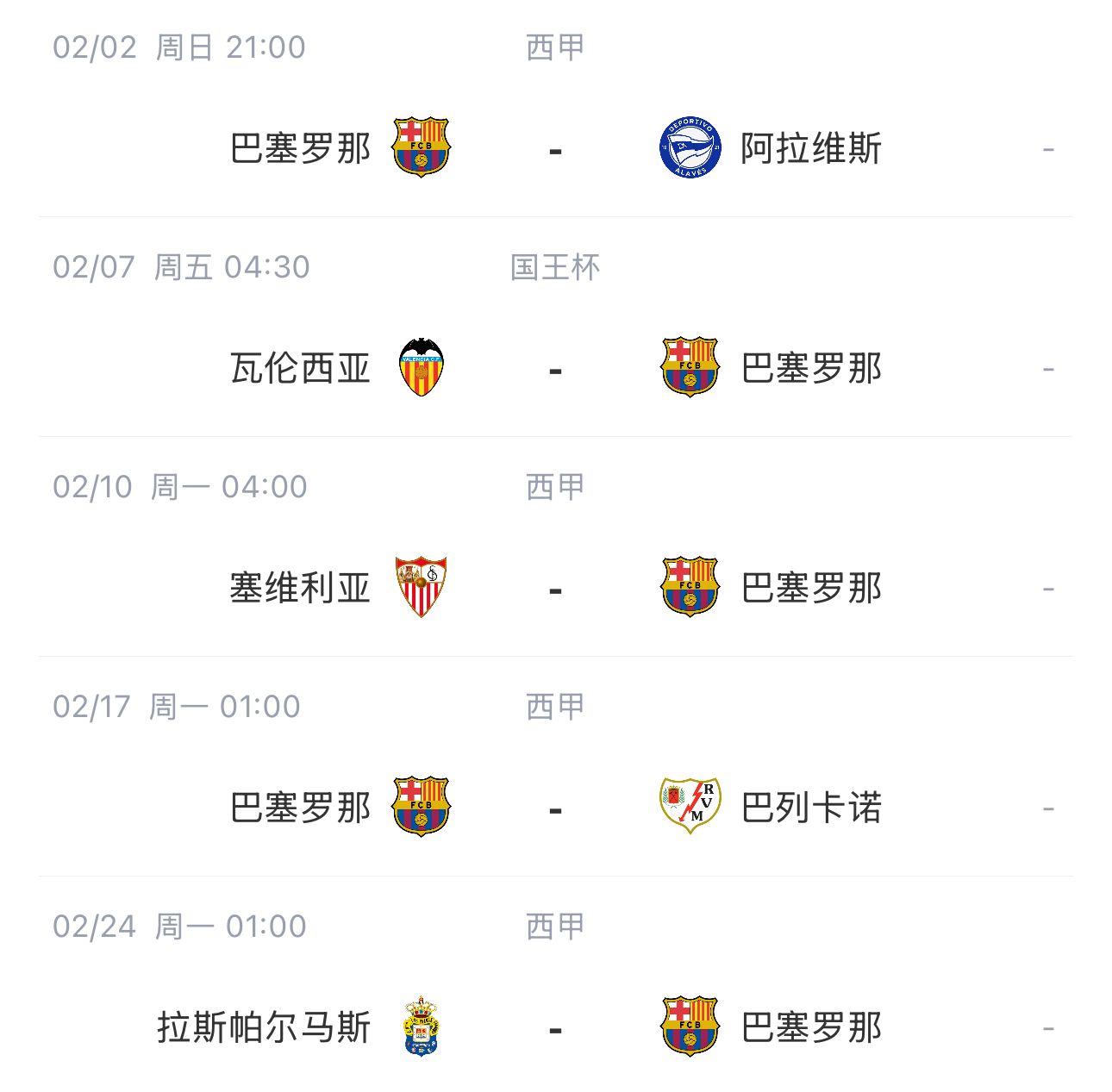 西甲争冠生变?皇马2月多两场欧冠&与曼城决战,巴萨马竞以逸待劳