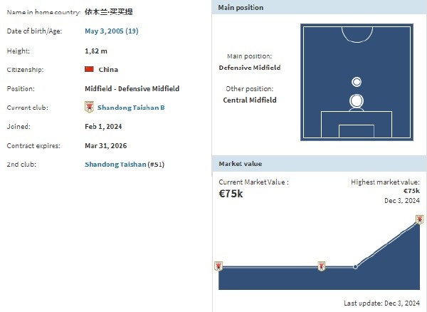 这支国青队阵中,另外一名得到广泛好评的球员是中场的依木兰。来自于山东泰山青训的他,虽然只有19岁,不过球风已经非常成熟。