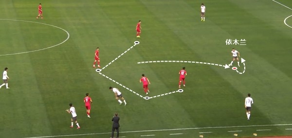 就像是这一次,队友回传后依木兰面前是4名吉尔吉斯斯坦球员,通过快速的转向,依木兰总能调整出合适的出球角度。