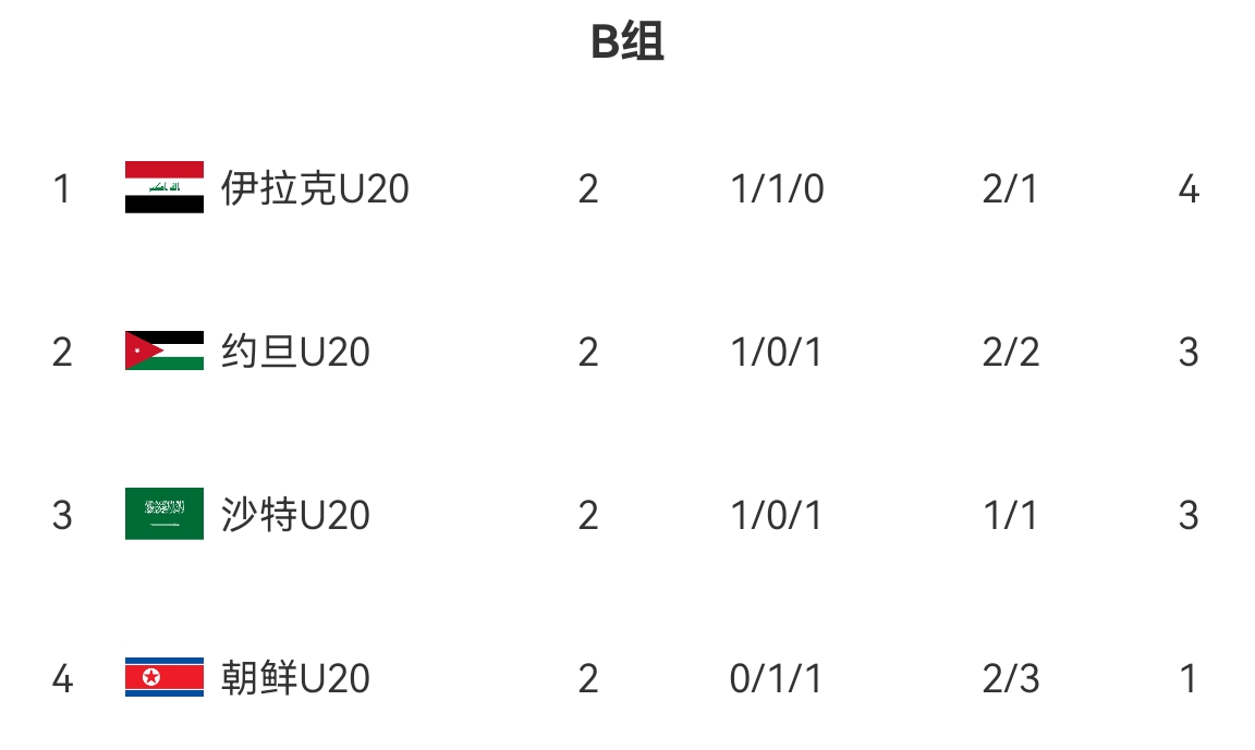目前B组积分形势