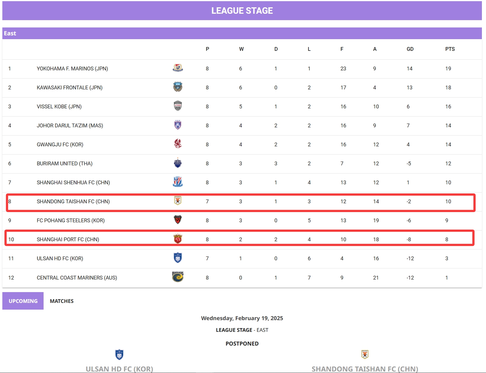 虽然亚足联官网战报提及了因为山东泰山退赛,上海海港晋级16强;但是亚足联官网积分榜又没有更新,目前山东泰山7轮仍然排在积分榜第8位,而上海海港排在第10位。