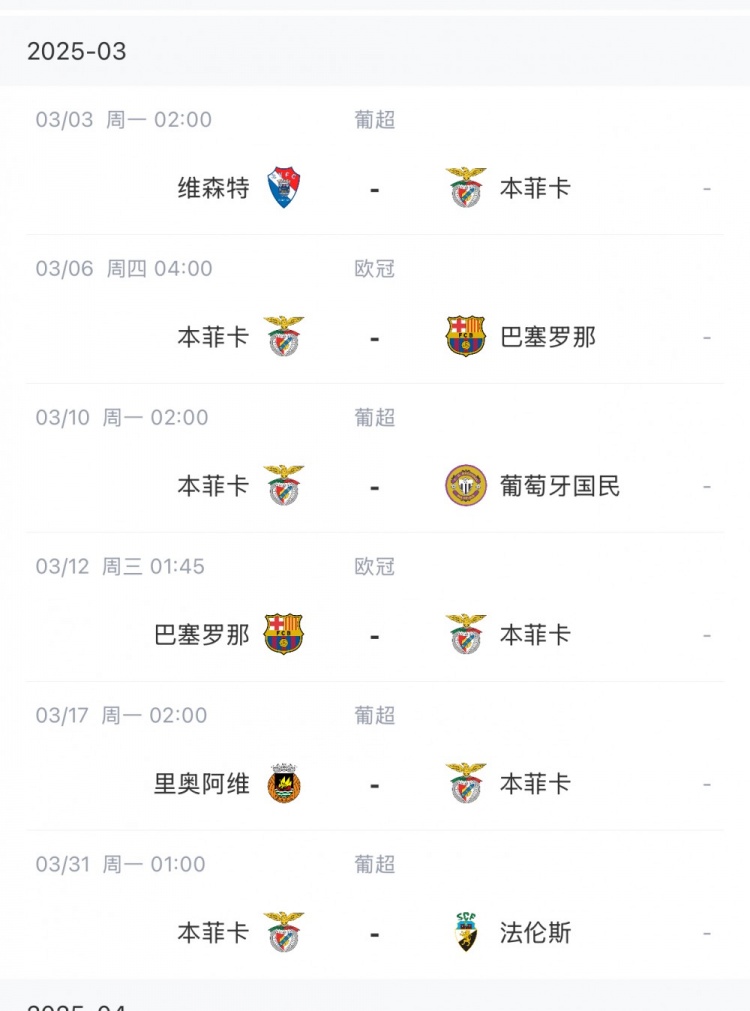 这场比赛是在欧冠1/8决赛首回合,本菲卡主场对阵巴萨比赛前的一轮葡超比赛,原本将在北京时间3月3日凌晨进行,不过目前该场比赛推迟至了3月29日凌晨进行。