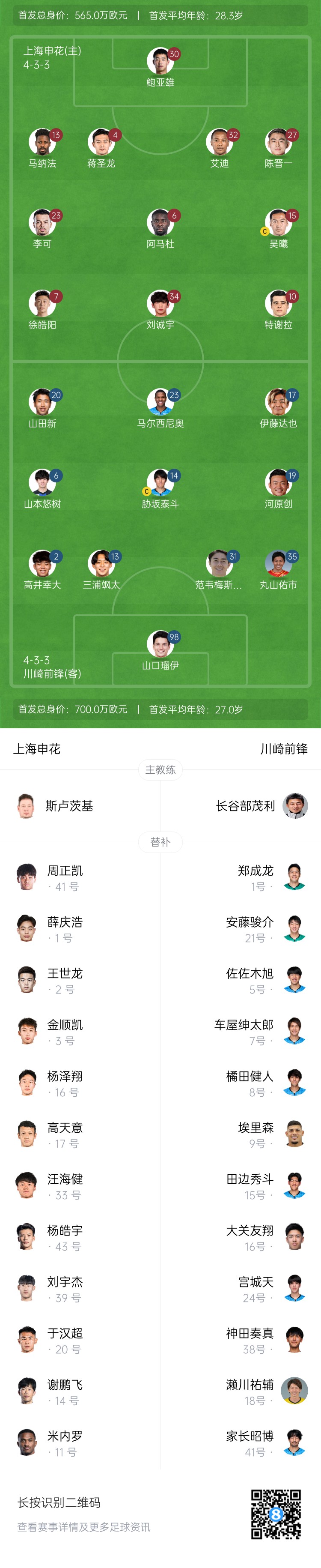 03月05日讯 北京时间20点,亚冠1/8决赛首回合,上海申花主场迎战川崎前锋,赛前双方公布首发。