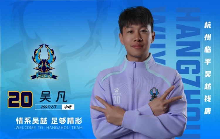 官方:中乙球队杭州临平吴越和安硕、秦强、赵智昊等16人续约
