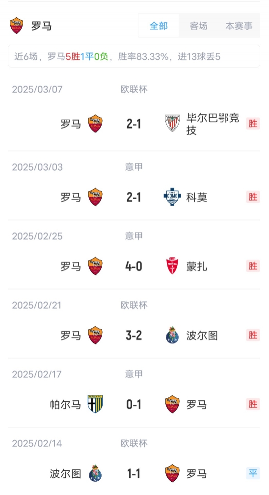 罗马首发:99-斯维拉尔、25-尼尔森、15-胡梅尔斯、5-恩迪卡、12-阿卜杜勒哈米德、17-科内、16-帕雷德斯、34-萨拉赫-埃丁、7-佩莱格里尼、18-苏莱、14-肖穆罗多夫