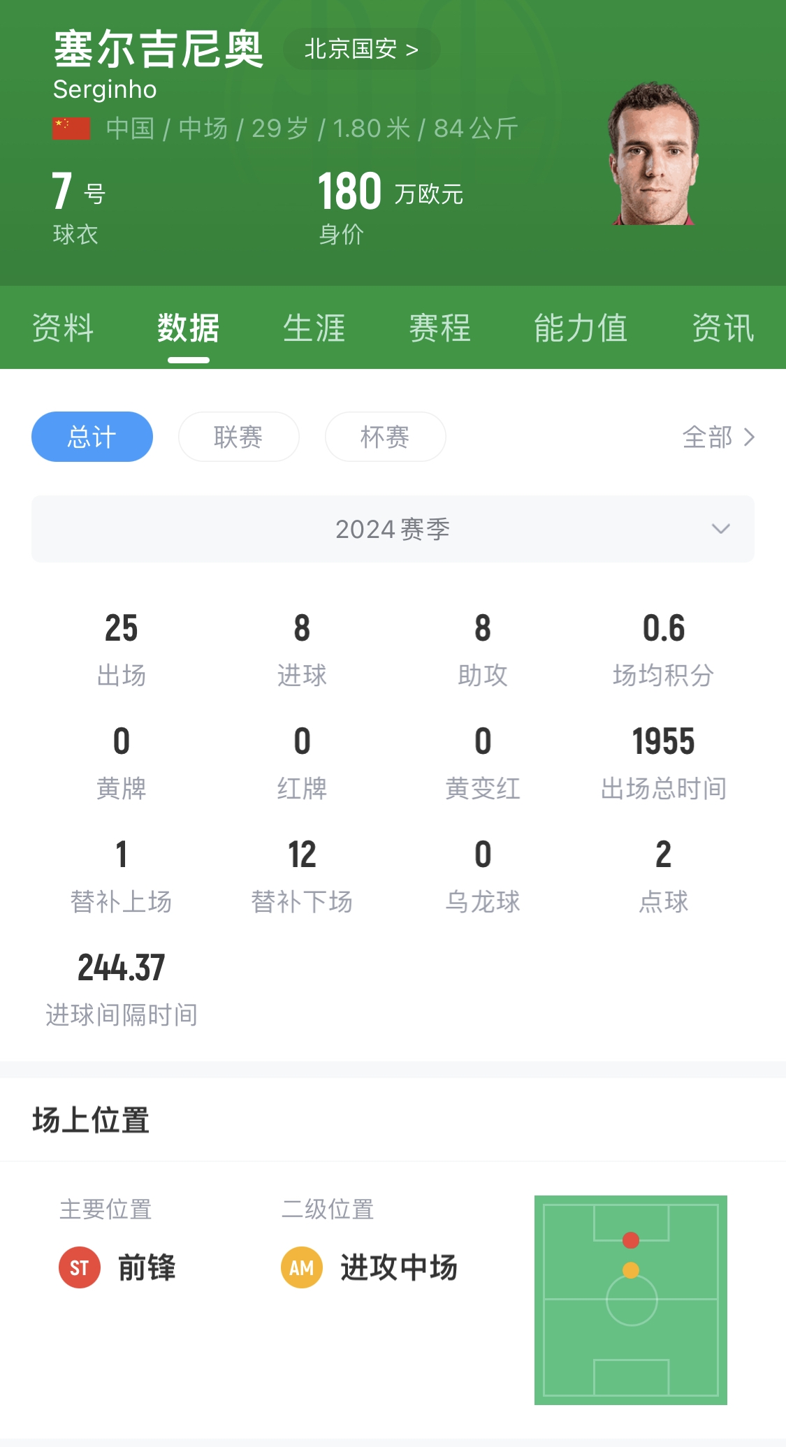 180万欧!塞尔吉尼奥成为中国身价最高的球员,武磊120万欧第2