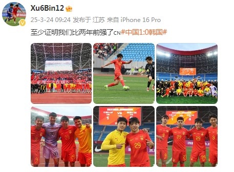 3月24日讯 U22国足球员徐彬更新社媒,庆祝球队击败韩国。
