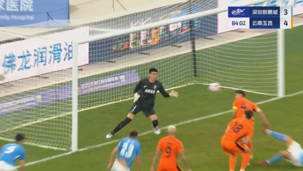 再扳一球!杨一鸣头球砸中李松益入网,新鹏城仍3-4落后玉昆