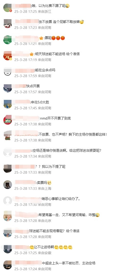 3月28日讯 本周六晚间,河南队将在主场迎战上海申花,不过这场比赛的门票迟迟没有销售,球队也没有对此做出解释。赛前一天,河南队球迷越发不满。在球队官博评论区,球迷们发出了很多的质问。