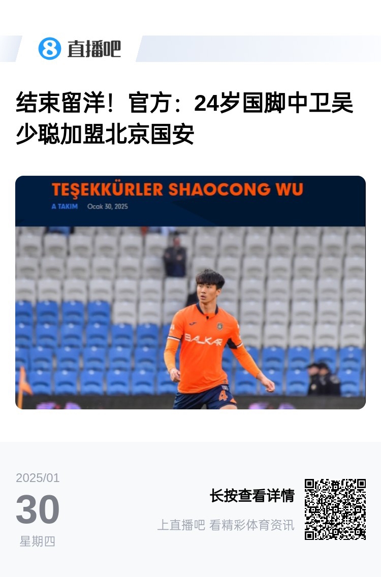 留洋归零!国足年初冬训“唯二”留洋吴少聪、侯永永全部回国效力
