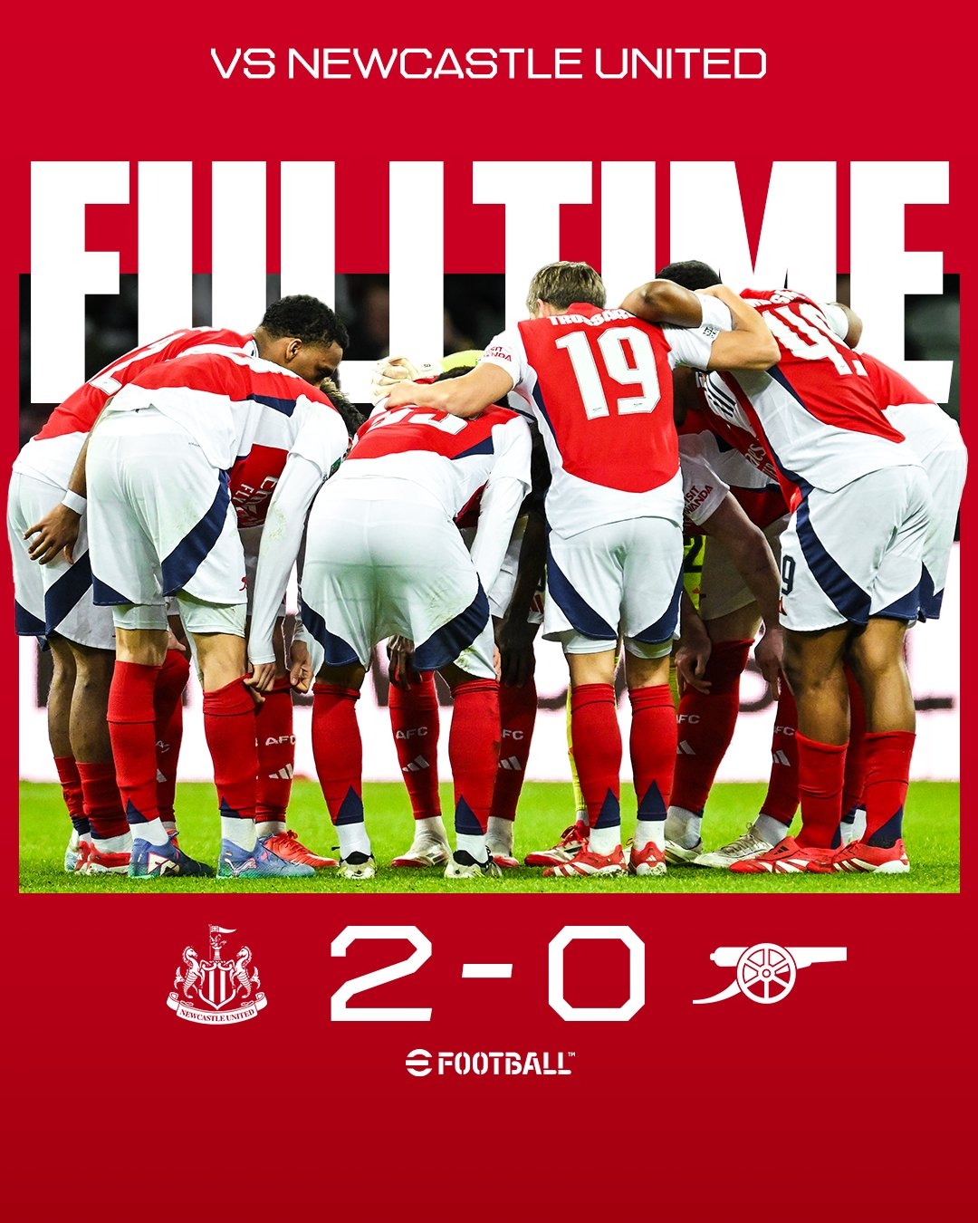 阿森纳0-2遭纽卡斯尔双杀,总比分0-4出局,无缘决赛。