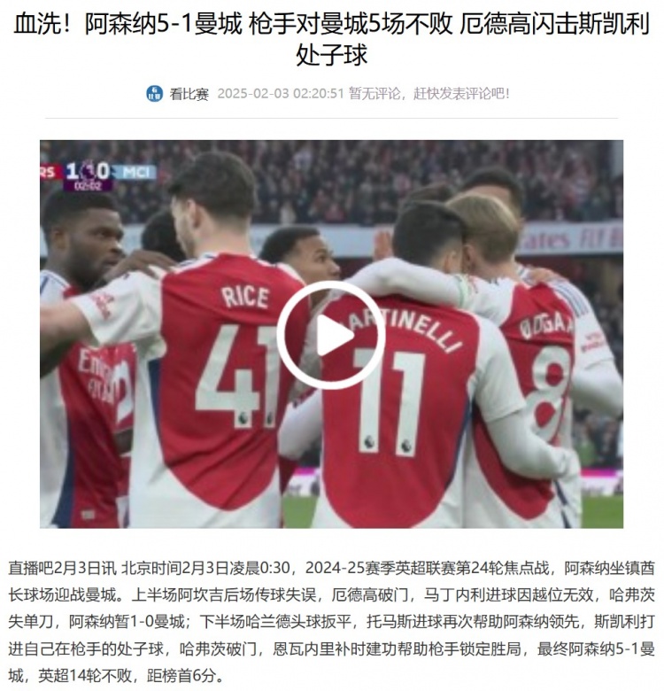 而就在3天之前,阿森纳才刚刚5-1血洗卫冕冠军曼城,显得意气风发。