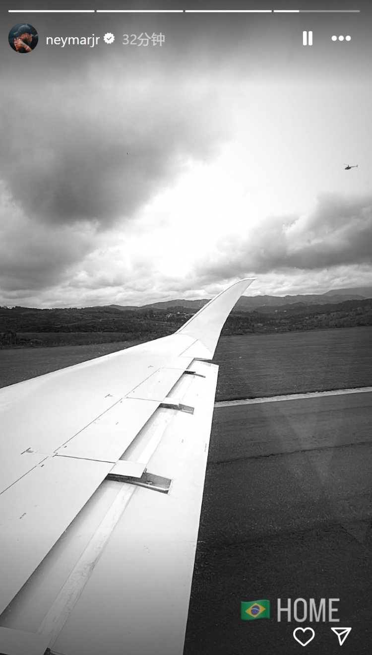 即将回归母队桑托斯!内马尔晒飞机抵达巴西照片:回家了 1月31日讯 此前内马尔宣布,自己将回归母队桑托斯。他刚刚晒出了飞机抵达巴西的照片,表示自己已经回家了。根据此前报道,内马尔即将接受桑托斯的体检并签约,他只会和桑托斯签约半年,因为他的目标是在夏季重返 2025/02/01