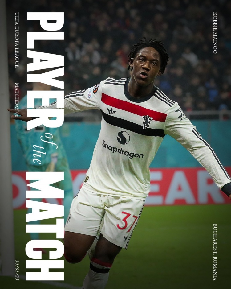 传射建功!梅努当选本轮欧联杯曼联队内最佳球员 1月31日讯 欧联杯第8轮比赛,曼联客场2-0击败布加勒斯特星,5胜3平积18分排名第三位,直接晋级16强。此役梅努首发出任进攻型中场,传射建功帮助曼联取胜。曼联官方宣布,梅努当选此役曼联队内最佳球员 2025/01/31